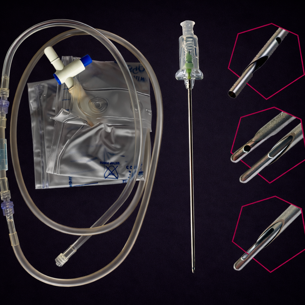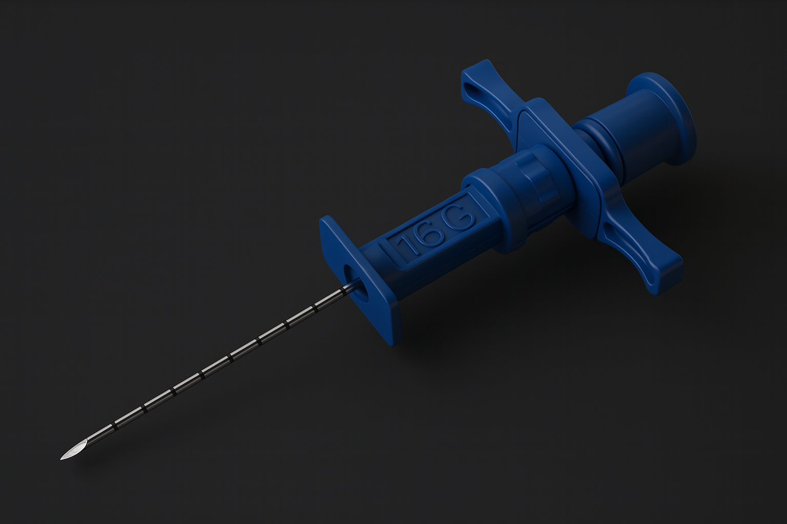 Jednorazowa igła do biopsji tkanek miękkich, takich jak wątroba, węzły chłonne, tarczyca i nerki. Igła wyposażona jest w mandryn zakończony trokarem i bezurazową kaniulę z końcówką „Menghini”. Urządzenie jest wyposażone w system aktywacji podciśnienia uruchamiany przyciskiem na strzykawce, co pozwala na obsługę urządzenia jedną ręką. Przesuwny ogranicznik na kaniuli pozwala użytkownikowi łatwo ustalić głębokość wkłucia. Znaczniki echogeniczne poprawiają widoczność w obrazie USG, a złącze Luer Lock zapewnia bezpieczne zamocowanie igły bez utraty podciśnienia.