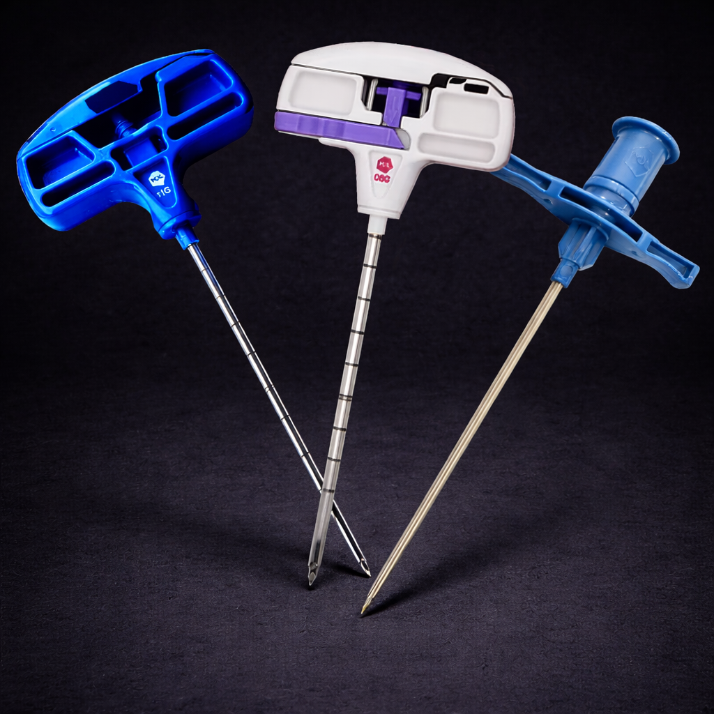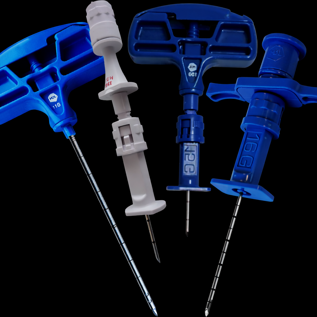 jednorazowe igły do biopsji tkanek miękkich przeznaczone do współpracy a aparatami biopsyjnymi – Promag Ultra, Promag 2.2, Palium, Magnum, Biopty. Wszystkie igły zaopatrzone w usuwalne uchwyty ułatwiające montaż igły w aparacie. Każda igła znakowana co centymetr